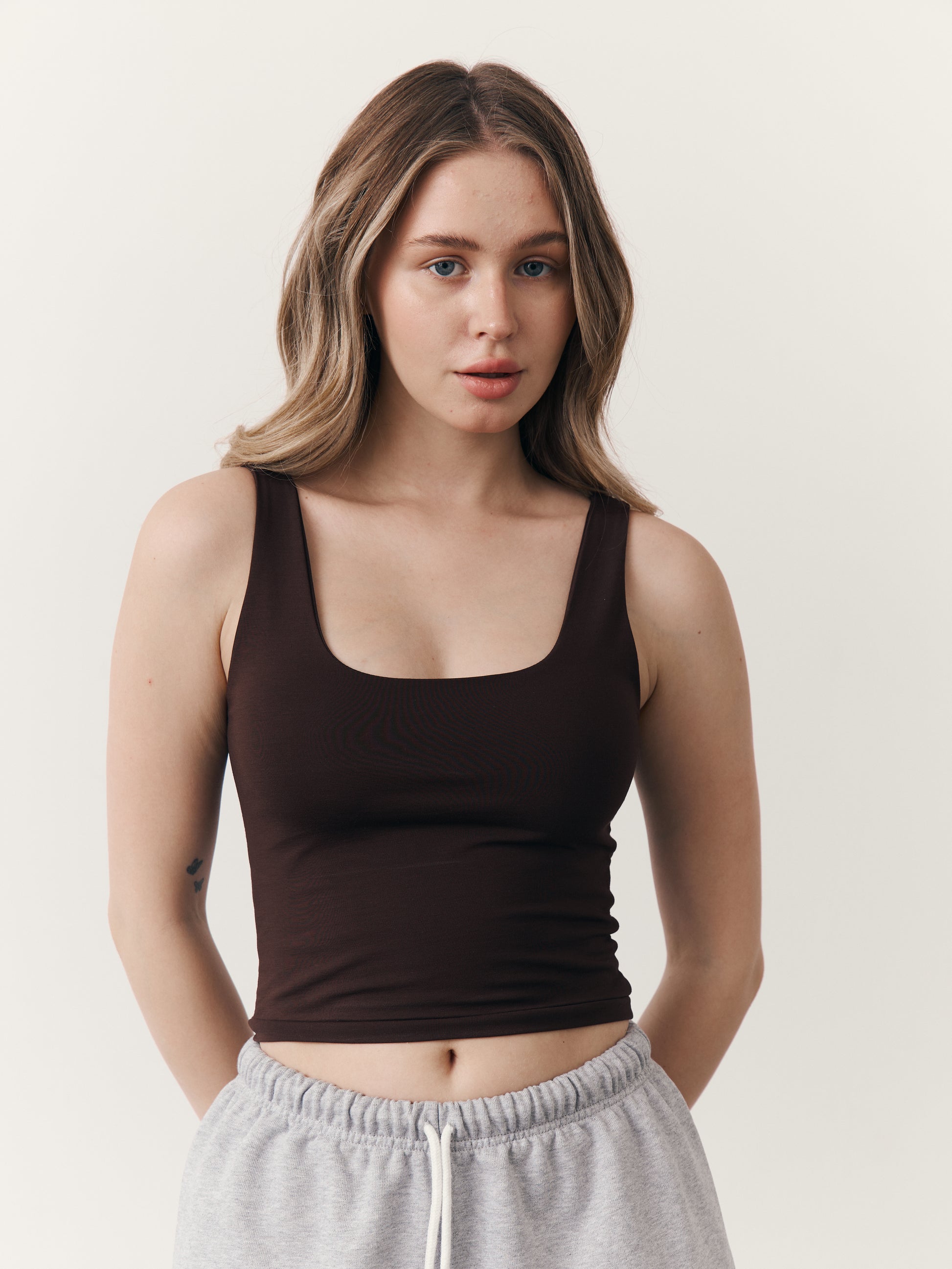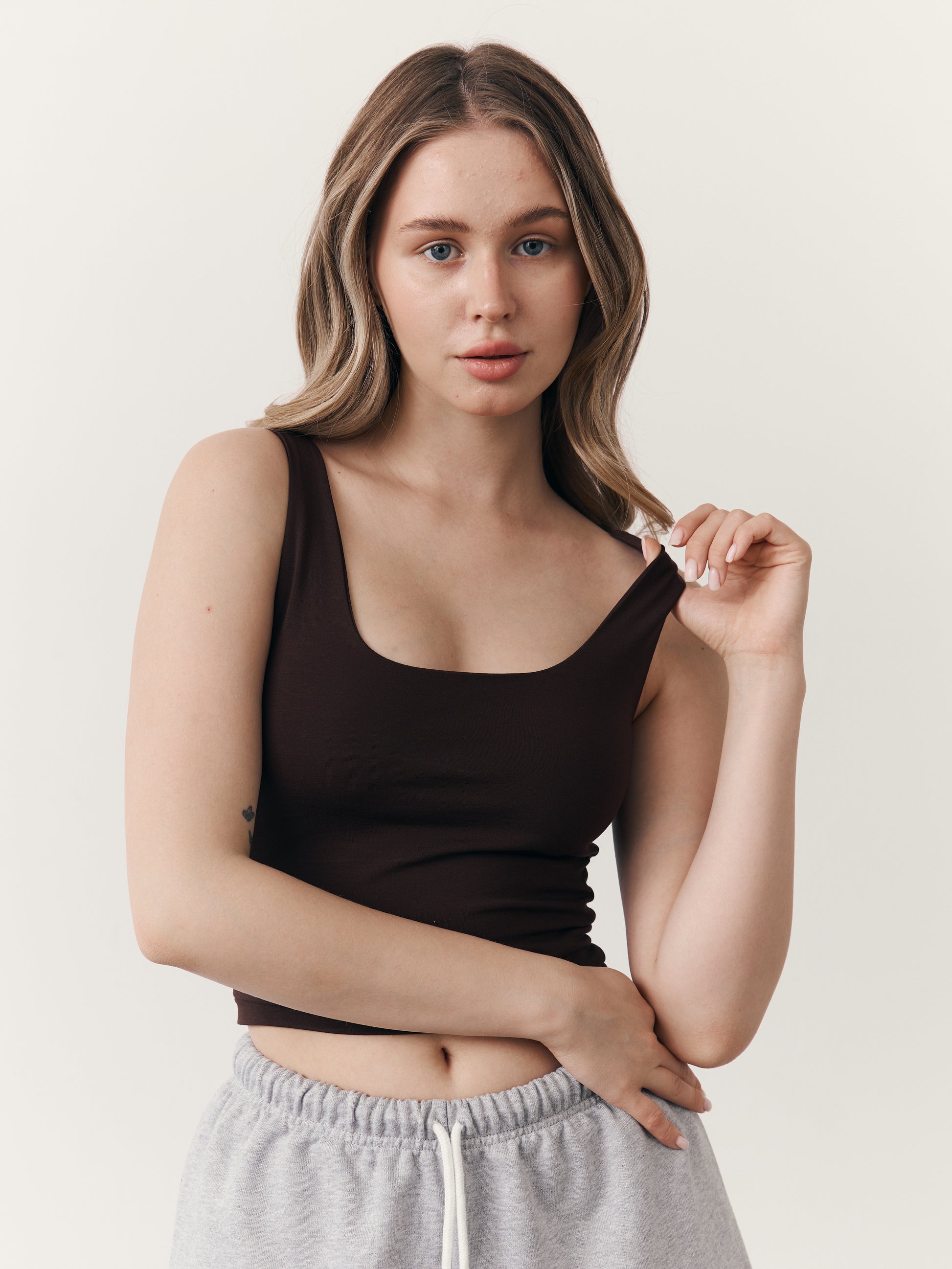 Універсальний топ з широким вирізом. Приталений силует з м’якої еластичної віскозної тканини. Ідеально сидить по фігурі, не обмежує рухів.
