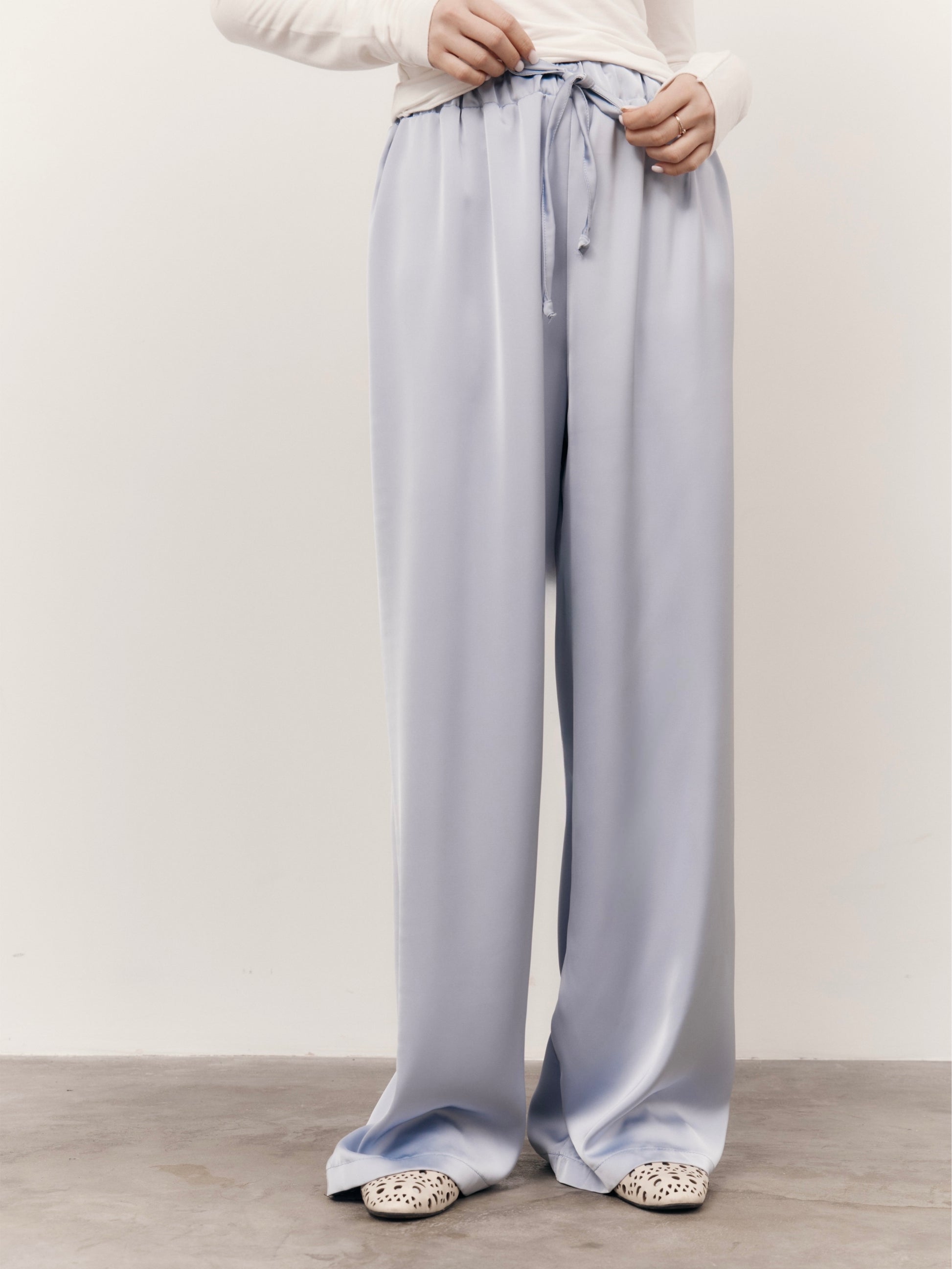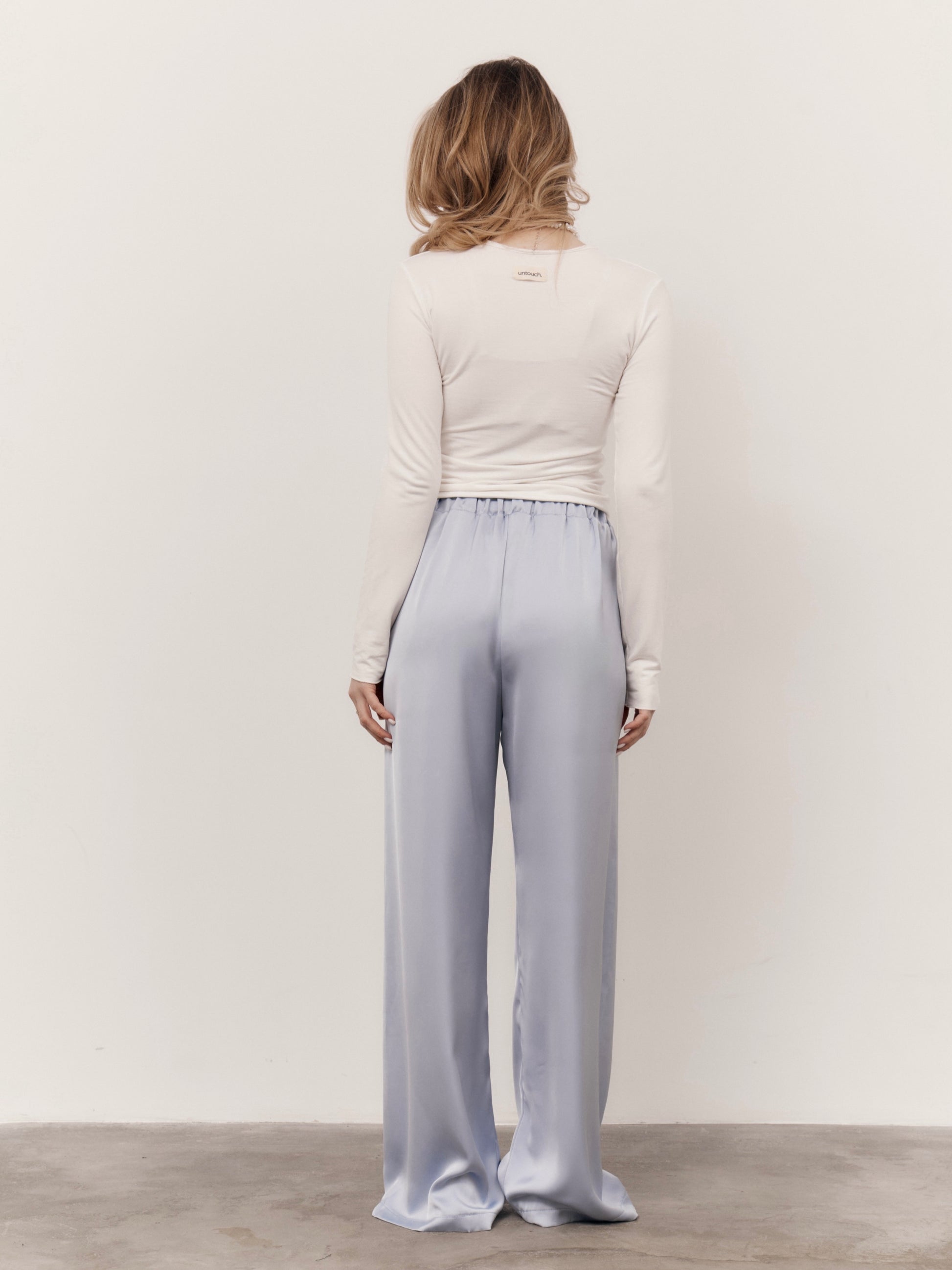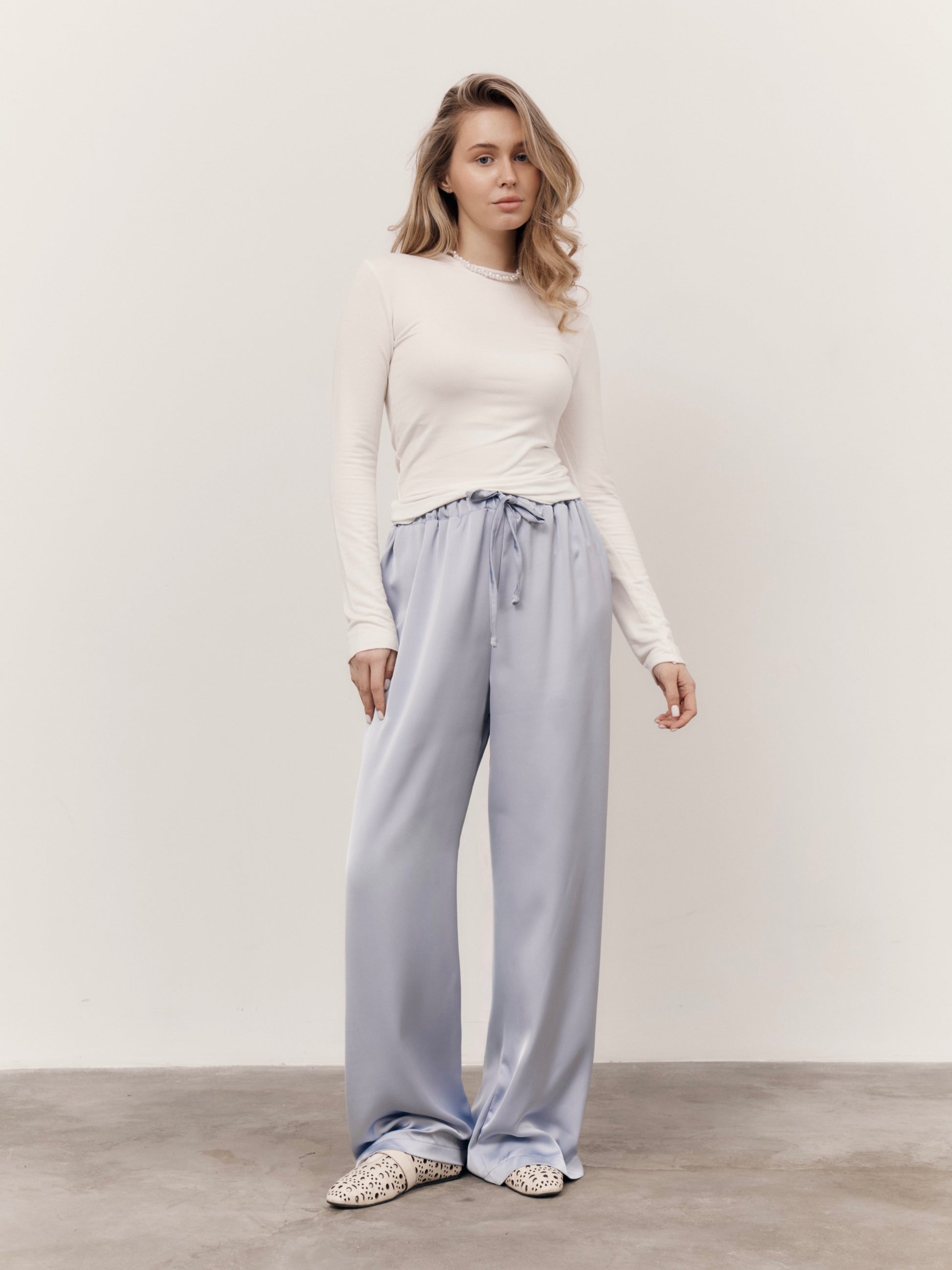 Сатинові штани прямого та вільного крою. Прохолодна до тіла тканина, яка майже не мнеться та не залишає зачіпок.