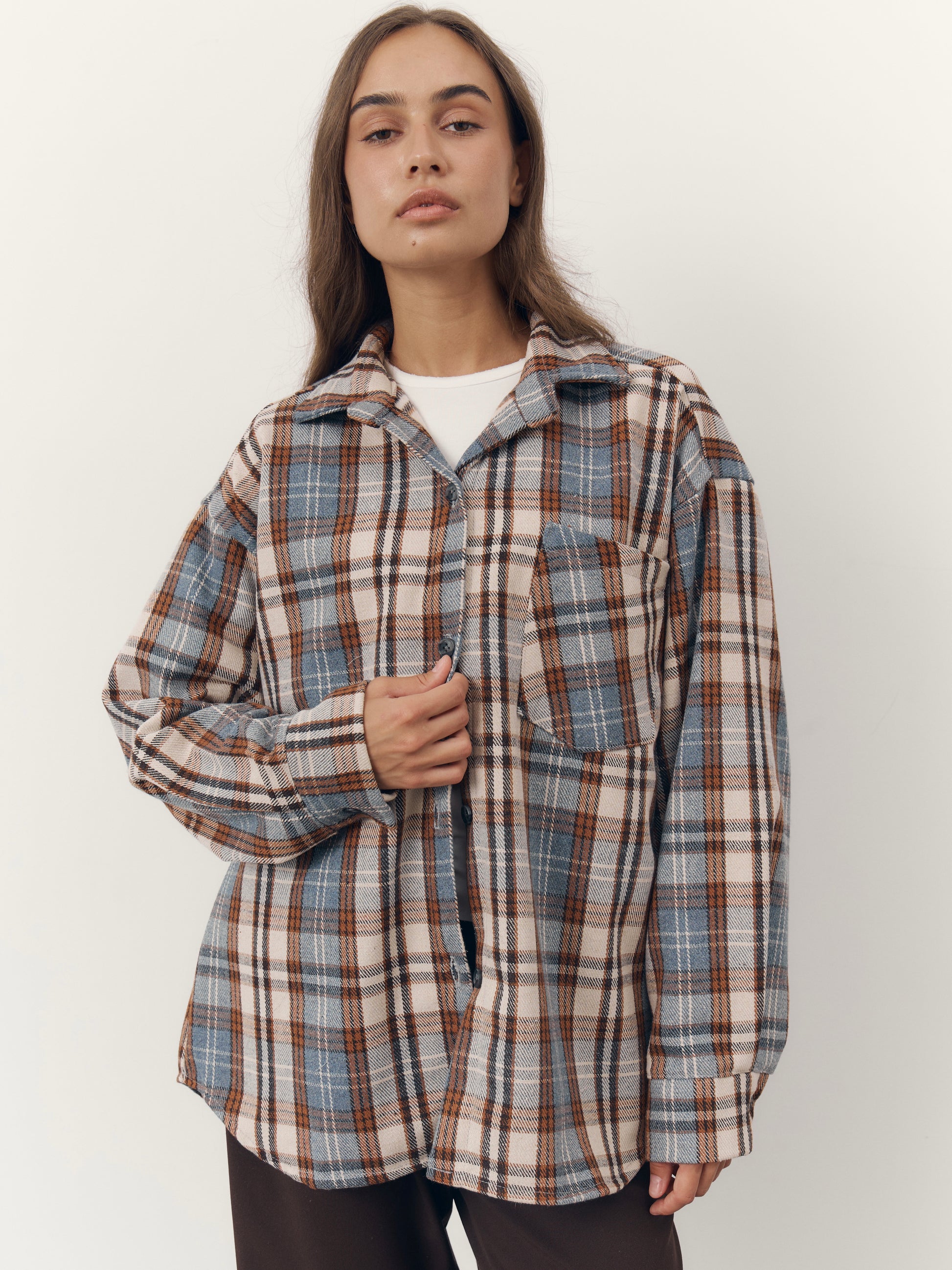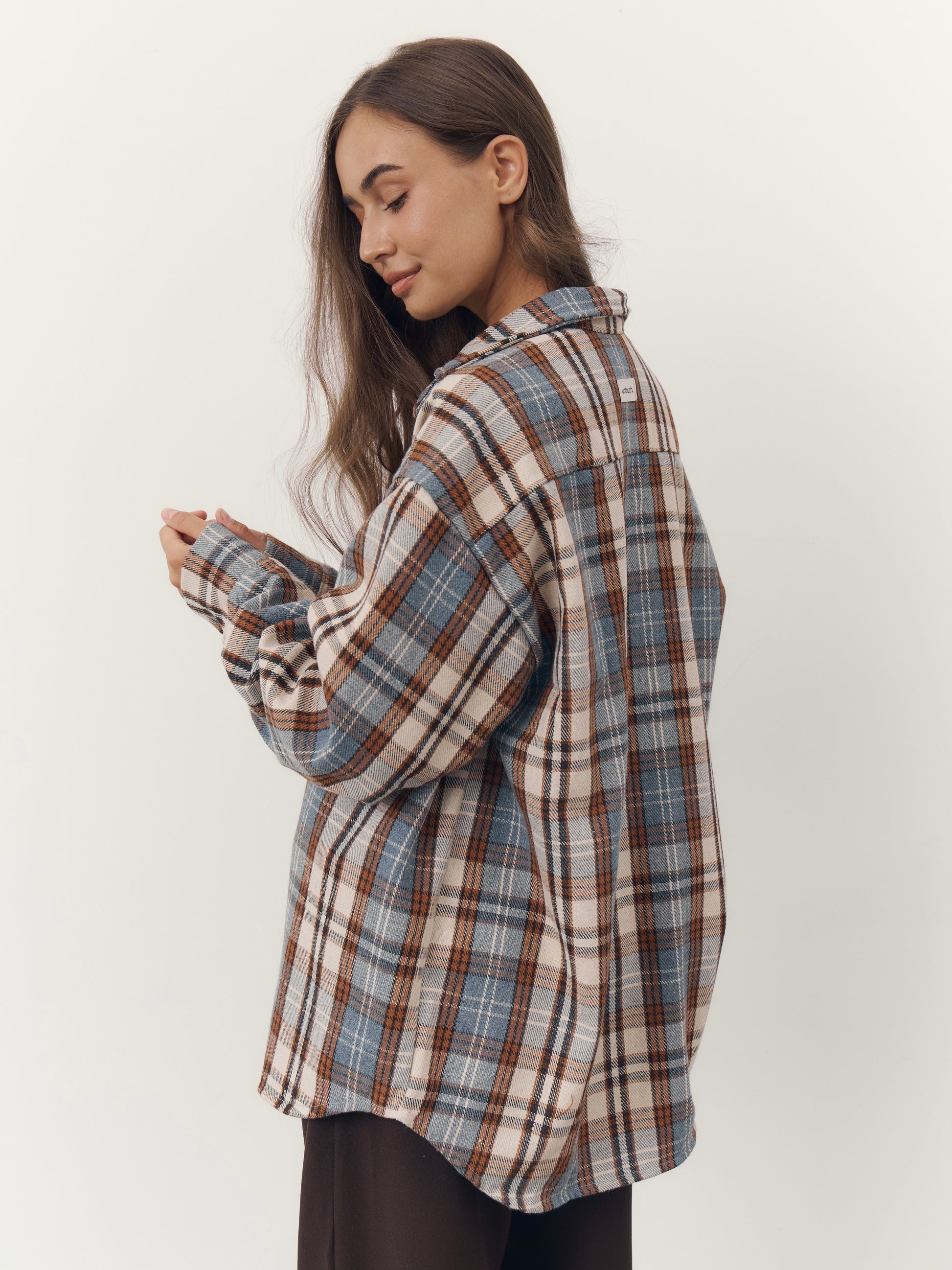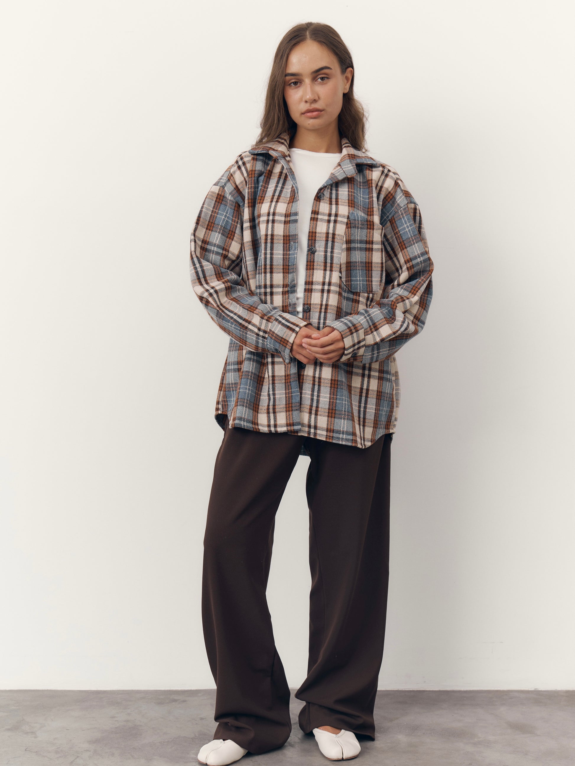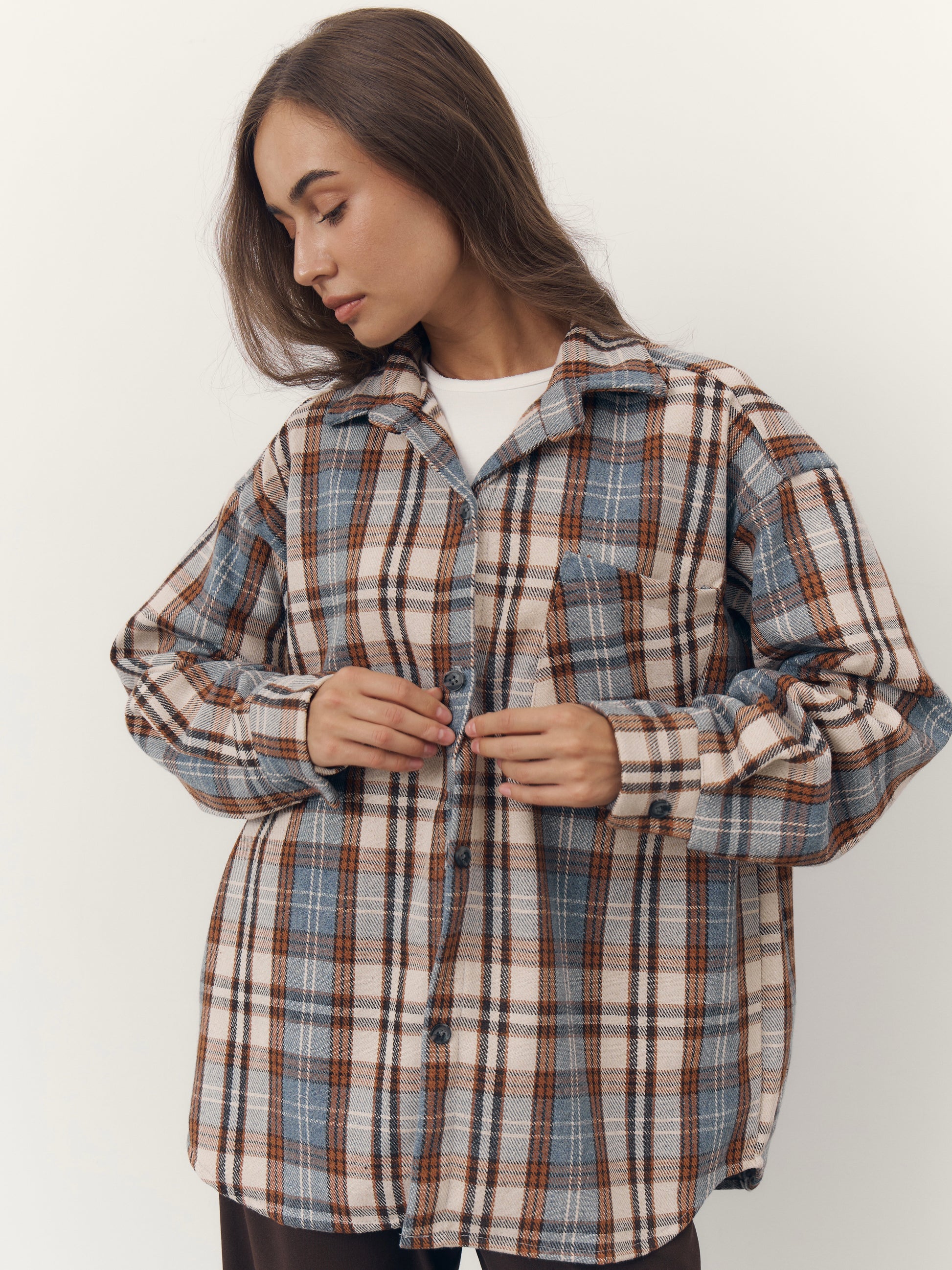 Сорочка оверсайз крою, з вовною у складі. З щільної тканини, яка зберігає тепло та добре тримає форму, майже не мнеться.